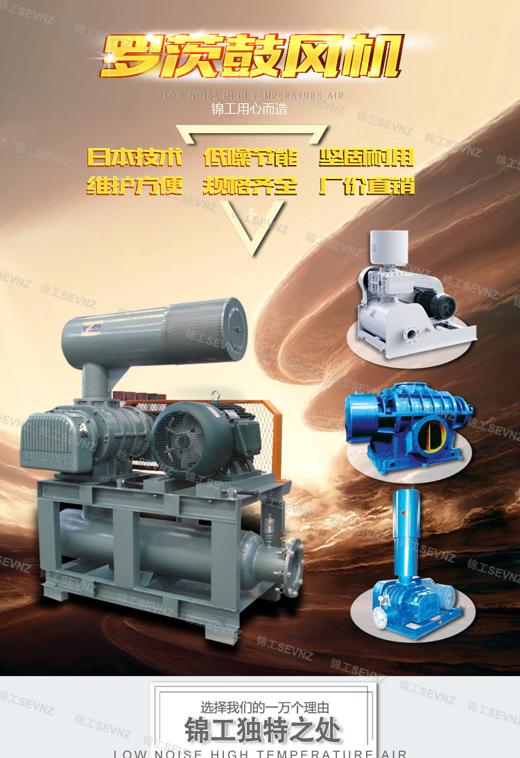 羅茨鼓風機是一種容積轉式鼓風機,即依靠氣缸容積的變化在電動機的帶動下向外界輸送氣體的設備。由英國人齊治京斯于1849年發明,再由美國工程師羅茨改進。此后人們即稱這種氣體輸送機械為羅茨鼓風機而延續至今。